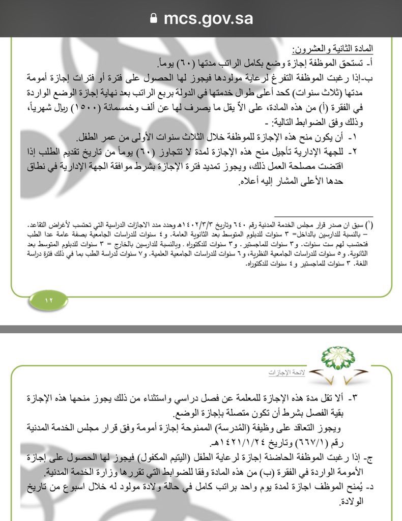 الأخبار اخبار محلية العمل. وأوضحت الوزارة أن تم تعديل على بند الإجازة للموظف في حال. أوضحت وزارة الخدمة المدنية أن الموظف في الجهة الحكومية ي منح إجازة ٣ أيام في حال ر زق بمولود وفق ا للائحة التنفيذية للموارد البشرية.
