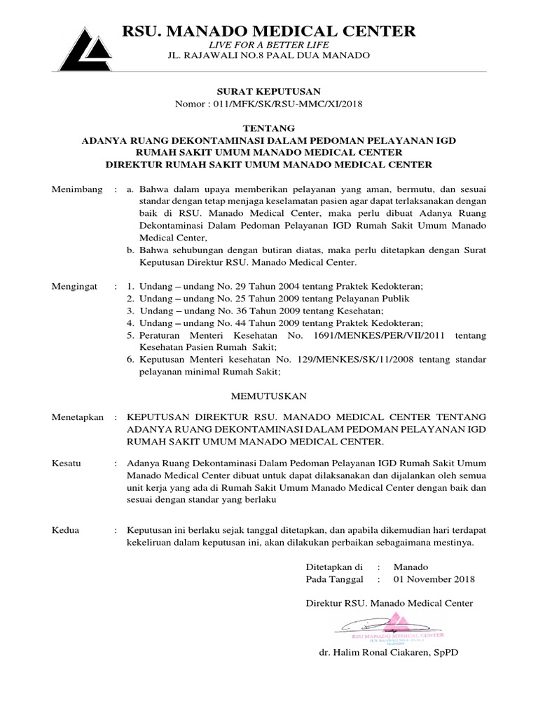 011 Surat Keputusan Adanya Ruang Dekontaminasi Dalam Pedoman Pelayanan Igd Docx